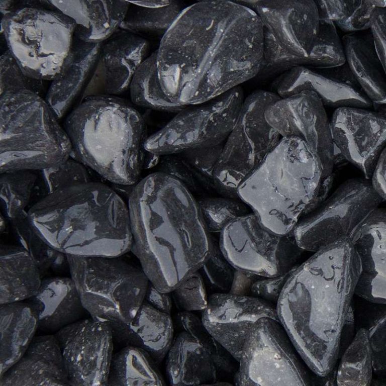 Let op: Bij levering kan het grind er lichter of stoffiger uitzien, omdat het niet gewassen is. Na regenval of besproeiing zal het zijn diepe zwarte kleur bereiken.